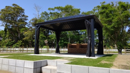 ・屋根、BBQ炉を備え付けております。