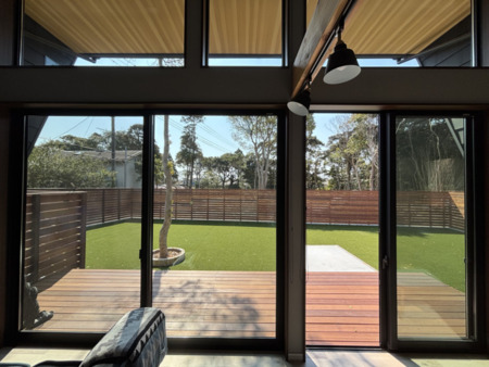 ●ワンちゃんの足に優しい人工芝の専用ドッグランにもなるお庭