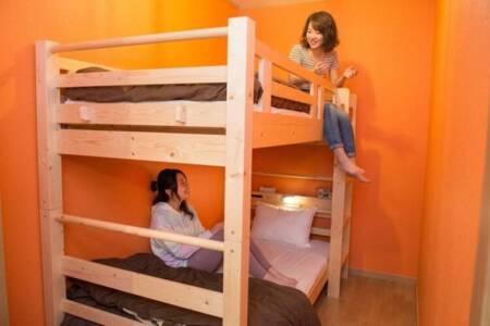 〇2F 洋室(シングル2台)、洋室(2段ベット1台)、和室(6畳)+洋間(2段ベット1台)