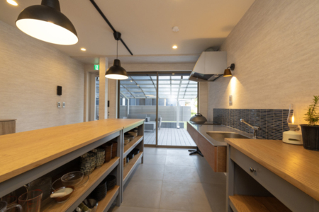▶屋外のウッドデッキ(1F)では電気グリルにてBBQを楽しめます。(片付け込みで21時まで)