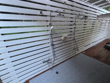 屋根付きのサウナスペースはシャワー二台、露天風呂完備!