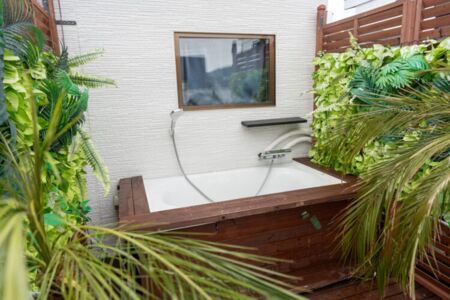 ※外のお風呂は清掃しておりますが、砂ぼこりが入ってしまうためお客様にて使用時に洗い流していただけますようにお願いします。