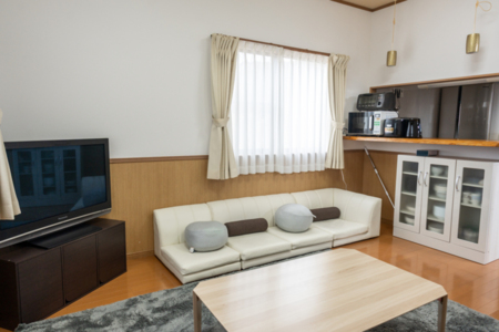 無料Wi-Fi/全室エアコン/洗濯機(洗濯用洗剤あり)/ハンガー/大型テレビ(地上波放送なし)/外用サンダル/虫除けスプレー