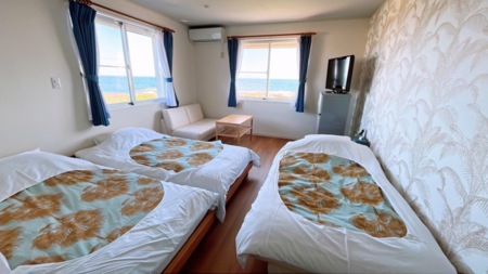 海まで徒歩0分、太平洋を望む全室オーシャンビューの客室からは紺碧に輝く太平洋が一望できます。バーベキューはもちろん海を眺めながら 雨の日でも出来る屋根付きハウスも2か所ございます。