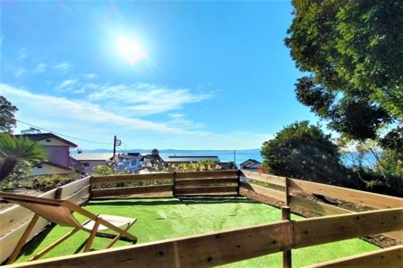 綺麗な館山湾を眺めながら屋根付きバルコニーでバーベキューが出来ます。