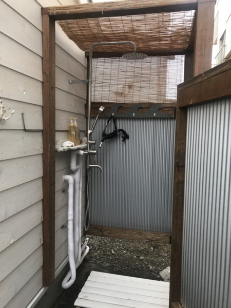 温水外シャワー 水着用脱水機( 水着は外シャワーでゆすいで下さい) 物干し台