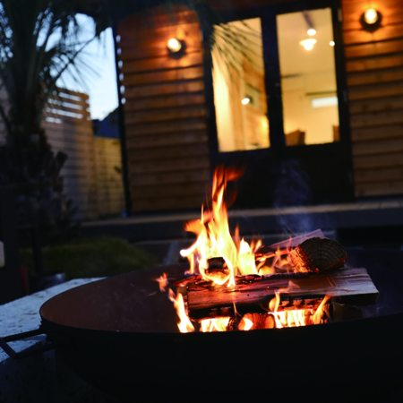 しっかりとした焚火スペースを用意いたしましたので、焚火を楽しんでいただけますが、煙が激しいと、近隣の方が消防に連絡なさることもございます。