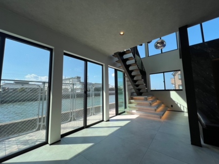 まるで川面に建っているかのようなリバービューです。光溢れる水面の輝きがテラスだけではなく、リビングにもキラキラと降り注ぎます。