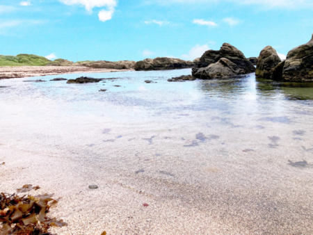 岩場には魚やカニ、ヤドカリがいて、磯遊びも楽しめます♪