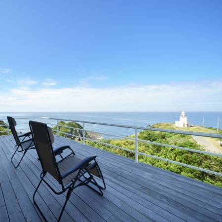 福岡県宗像市大島の灯台前にある一戸建てのヴィラとなります。併設のサウナもあり、快適にプライベートな時間をお楽しみいただけます。