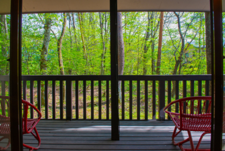 板張りの壁に開放的な窓で別荘気分を楽しめます。