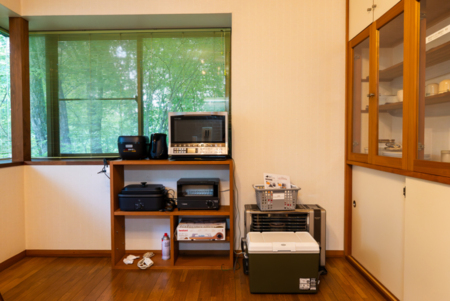 焚き火台 / BBQコンロ / テーブル / イス / 火起こし器 / BBQ用網 / 火ばさみ用トング / 着火剤 / 使い捨て食器類 / クーラーボックス / 保冷剤(お部屋の冷凍庫内にご用意しています。)