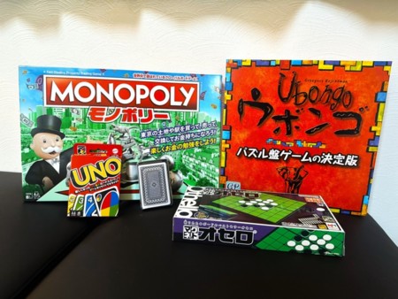 薪ストーブ、カラオケ(switch)、各種ボードゲーム