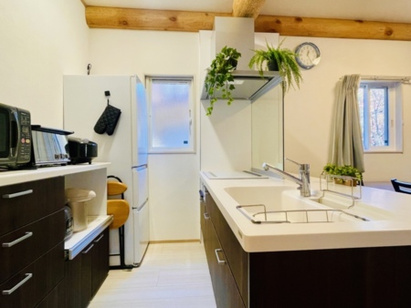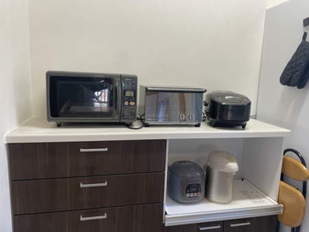 大型冷凍冷蔵庫、LPガス4ロ、電子レンジ、炊飯器、土鍋、カセットコンロ( ガスボンベはご持参ください)、トースター、ホットプレート等