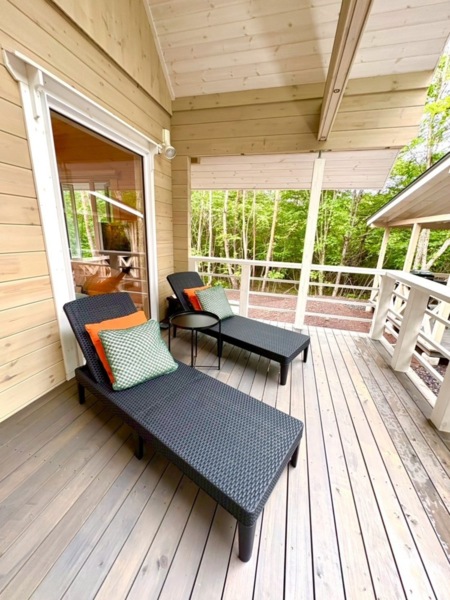 ウッドデッキには、フィンランドサウナ小屋、水風呂、リラクゼーションデッキ。また、豊かな北軽井沢の自然に囲まれた炭火BBQ専用のガゼボもご準備いたしました。