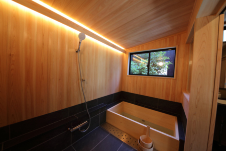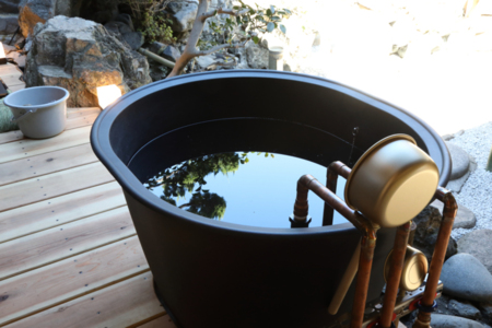 また、室内には槙(まき)風呂も備わり、木のぬくもりと柔らかな肌あたりが魅力。二種類の湯浴みを気分に合わせて楽しめます。