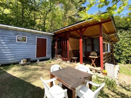 ●コテージ周りは芝生のテラスや薪小屋、BBQもできる東屋(雨天も可)と専用の小さなお庭もあります。