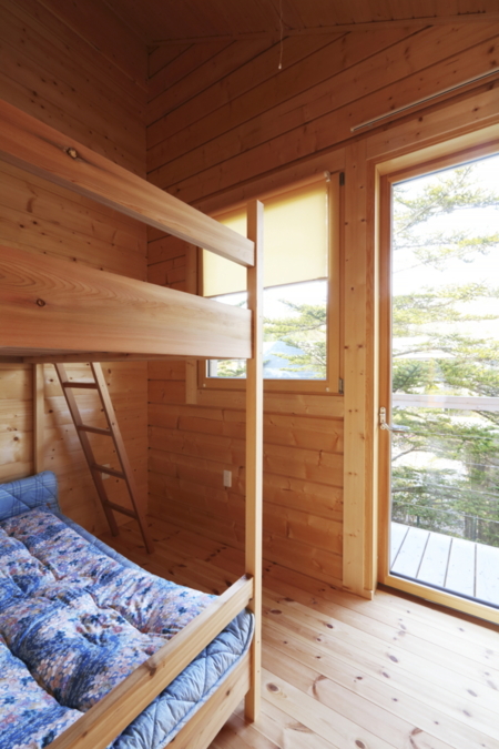 ログハウス屋さん特注の2段ベッドです。木の香りとぬくもりを感じます。