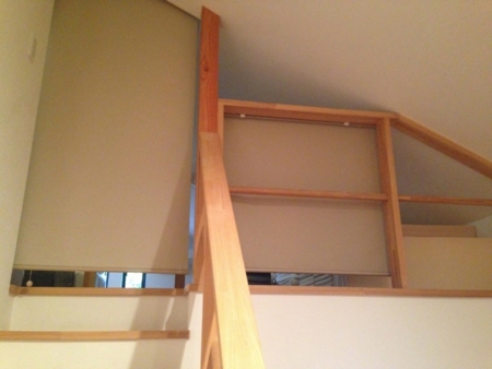 階段を上がったところはロールカーテンで仕切れるようにしてあります。