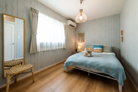 アメリカンテイストの家具を採用し、南国らしい開放感と落ち着きを両立しています。