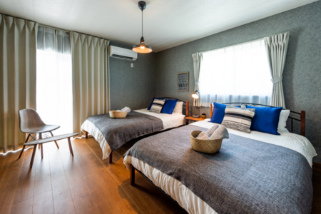 2F:寝室①(ダブルベッド2台+布団1組)/寝室②(ダブルベッド1台)