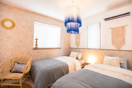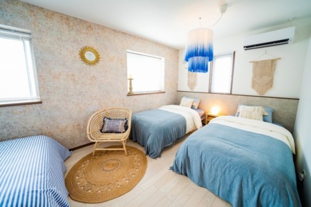 ・ダブルベッド2台・シングルベッド4台・セミダブルベッド1台・布団1セット・エアコン・ハンガー・コンセント・間接照明