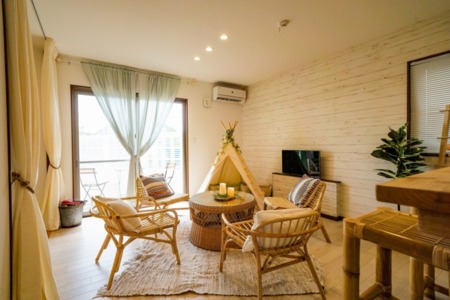 ・ソファ・テレビ・Wi-Fi・エアコン・間接照明・スポットライト