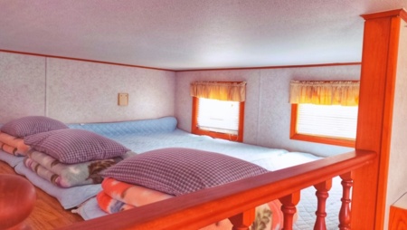 寝室にベット2台+ロフトに布団3組