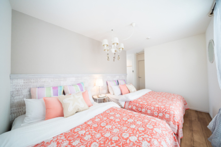 ・ダブルベッド4台・セミダブルベッド1台・シングルデイベッド1台・布団2組・エアコン・クローゼット・ハンガー・コンセント・間接照明