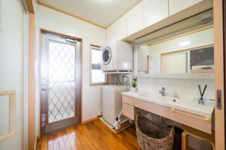 ・洗面化粧2台・鏡・ヘアドライヤー・洗濯機・洗濯洗剤・ガス衣類乾燥機