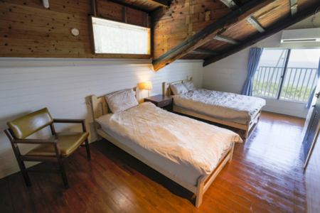 ダブルベッド1台につき2名就寝したとして、最大10名就寝可能という考え方です。