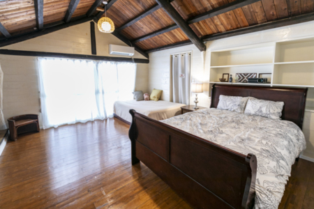 寝室3:クイーンベッド1台、ダブルベッド1台