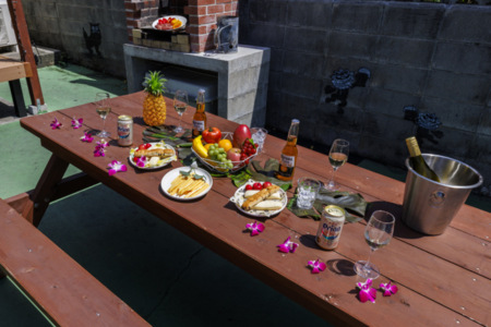 ウッドデッキとレンガ製のBBQ炉があるので、BBQをしてお楽しみください(^^)
