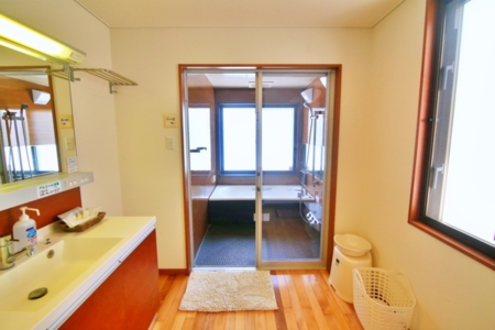 宿泊人数分のバスタオル及び、フェイスタオル用意。 基本的なアメニティーは、シャンプー、コンディショナー、ボディーソープ