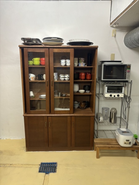 ガスコンロ、冷蔵庫、電子レンジ、オーブントースター、炊飯器、湯沸しポット、フライパン、鍋、ボウルなどをご利用いただけるほか、砂糖・塩・醤油や食器類はご用意しておりますのでご自由にお使いください。一般的なお料理に必要なものは揃っています。