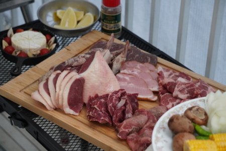 炭火のBBQコンロをベランダにセットしておきます。電気プレートBBQにも変更可能