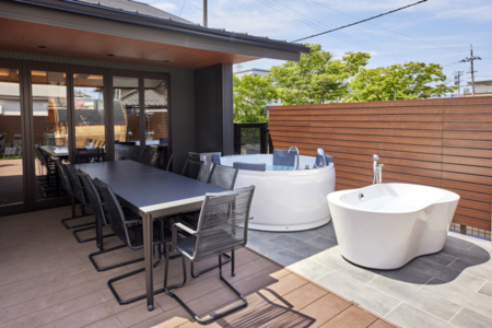 お庭にはバレルサウナ、水風呂、ジャグジーを設置しておりリラックスした時間をお過ごしいただけます。