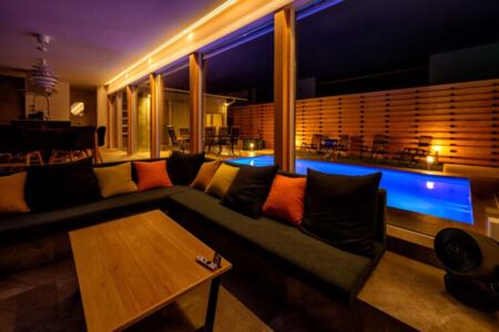 全長5.4Mのプライベートプールと本格的なサウナを備え、周囲を2.5Mの壁に囲まれた完全プライベート空間を実現しました。