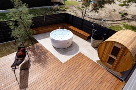 三角の家 + 樽(バレル)サウナ + ジャグジー