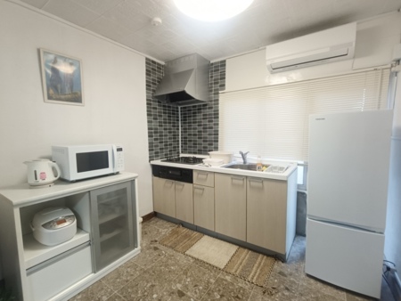 冷蔵庫1台、IHコンロ3口、電子レンジ1台、トースター1台、炊飯器1台、ポット1台、