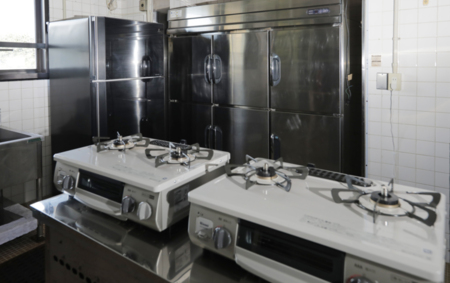 〈設備〉ガスコンロ(二口)×2・電子オーブンレンジ×2・ポット・冷凍冷蔵庫×2・炊飯ジャー・トースター・ホットプレート等
