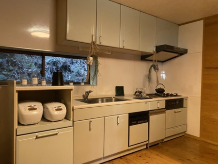冷凍冷蔵庫、LPガス3ロ、電子レンジ、炊飯器、土鍋、カセットコンロ( ガスボンベはご持参ください)、トースター、ホットプレート、