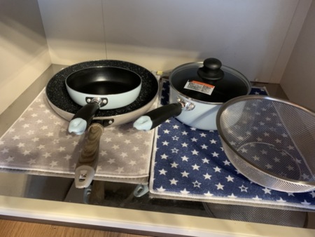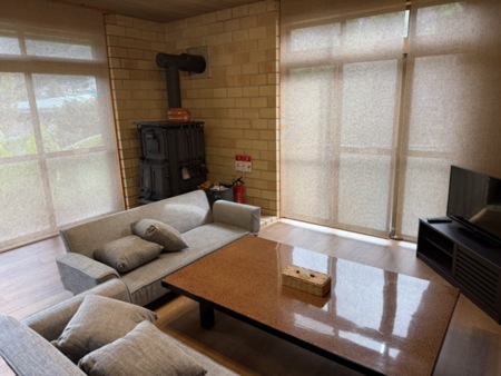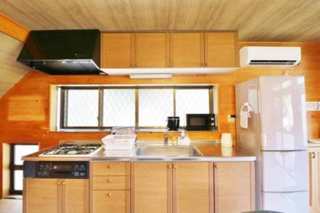 設備:暖炉、エアコン、テレビ、洗濯機、冷蔵庫、ガスコンロ、電子レンジ、炊飯器、トースター、フライパンなどの調理道具一式