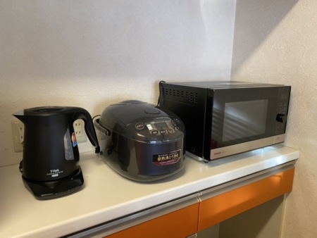 冷蔵庫、冷凍庫、ガスコンロ、オーブン、電子レンジ、炊飯器、ホットプレート