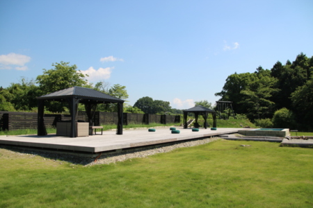 屋根付きのウッドデッキ / 大形バーベキューコンロ / 炭(3kg) / バーベキュー用網 / 着火剤 / ライター / バーベキュートング / 炭バサミ / 軍手 / プラスチック皿(人数分) / プラスチックコップ(人数分) / 割り箸(人数分) / グリルフォーク