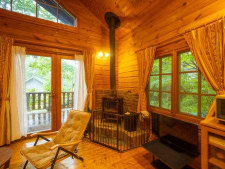 建物は1棟の中に独立した80㎡の1LDK+ロフトのログハウスが2つあり、それぞれが独立した居住空間となっています(duplex仕様)。2家族や2グループ以上でのご旅行にぴったりです。