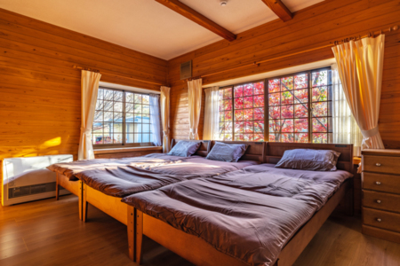 寝室1:1階寝室 シングルベッド 3台 (3名様)