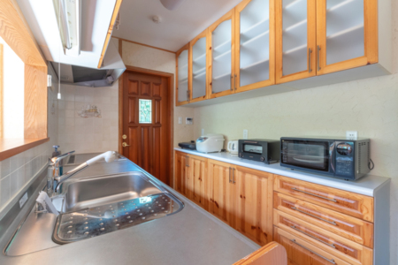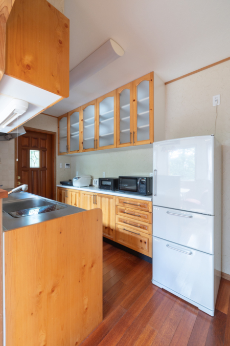 大型テレビや設備の整ったキッチンも完備し、長期滞在や自炊にも便利です。