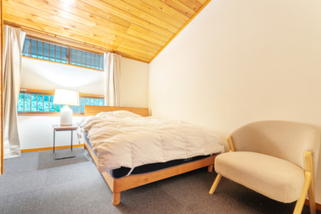寝室4(お客様の人数によっては開放しない場合がございます。):2階右奥にございます。セミダブルベッドが2セットございます。