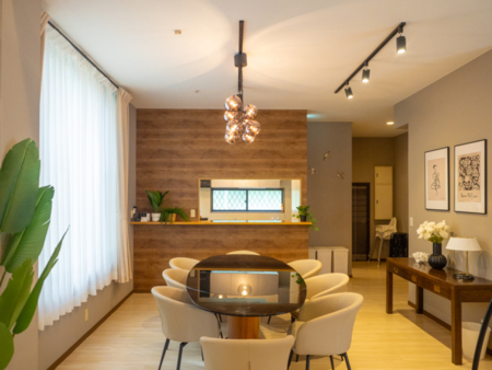 光のニュアンスを感じられる、ぬくもりのある空間。日差しが差し込むような明るさと心地よさがあります。
